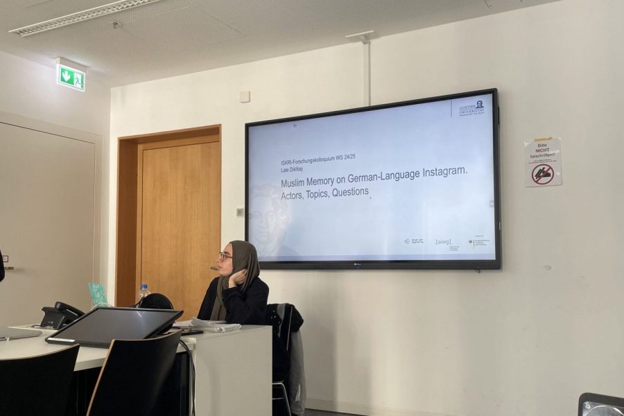 As part of the research colloquium organised by the Institute for Studies in Culture and Religion of Islam (Institut für Studien der Kultur und Religion des Islam) at Goethe University Frankfurt, Lale Diklitaş from the Frankfurt sub-project spoke about historical narratives spread by Muslim influencers on Instagram. Her presentation ‘Muslim Memory on German-Language Instagram. Actors, Topics, Questions’ focused on the role of Muslims as a diverse minority in Germany and the importance of constructing an image of history that differs from majority discourse for positive identity formation. In particular, she addressed Muslim influencers using early Islamic history to fight back against misogyny and racism. Examples included stories about the Prophet Muḥammad’s wives to promote women’s rights in work and education. Black companions of the Prophet, most notably the Ethiopian-descent freed slave and first muezzin of Islam, Bilāl b. Rabāḥ, serve as examples for the Islamic ideal of treating people of different skin colour, origin and social status equally.